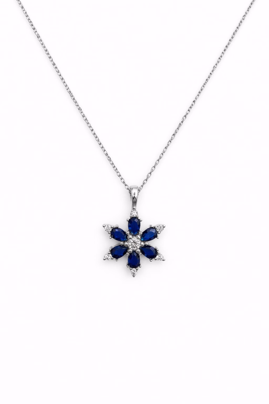 925 Ayar Gümüş Mavi Çiçek Kolye