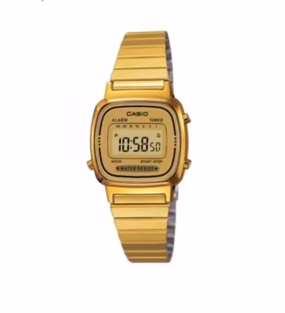 CASIO LA670WGA-9DF, klasik dijital kadın kol saatidir. Altın tonlu paslanmaz çelik kasa ile hem şık hem dayanıklıdır. LED ışık, alarm ve kronometre özellikleri sayesinde günlük kullanımda pratiklik sunar. Hafif yapısı bilekte rahatlık sağlar.