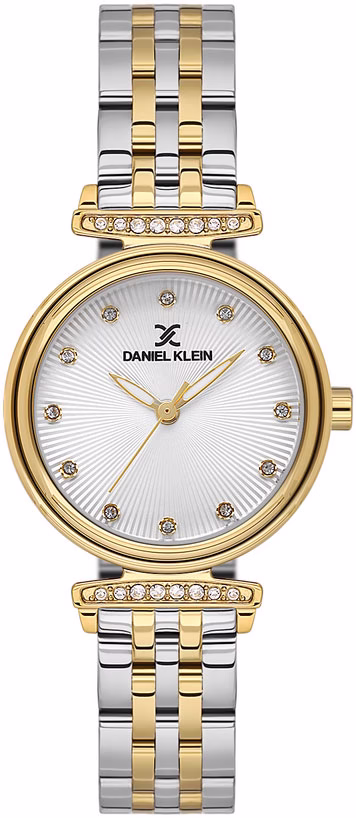 Daniel Klein DK.1.13958‑3, zarif ve feminen bir tasarıma sahip, moda odaklı kadın kol saatidir. Altın renkli çelik kasası ve çok renkli metal bileziği ile dikkat çeker. Beyaz kadranı, parlak indekslerle tamamlanmış ve saatin estetik duruşunu ön plana çıkarır. Quartz mekanizması, zaman ölçümünde yüksek doğruluk sağlar. Mineral cam sayesinde günlük kullanımda çizilmelere karşı koruma sağlar. 3 ATM su geçirmezlik seviyesi, el yıkama ve hafif su temaslarında güvenli kullanım sunar.