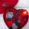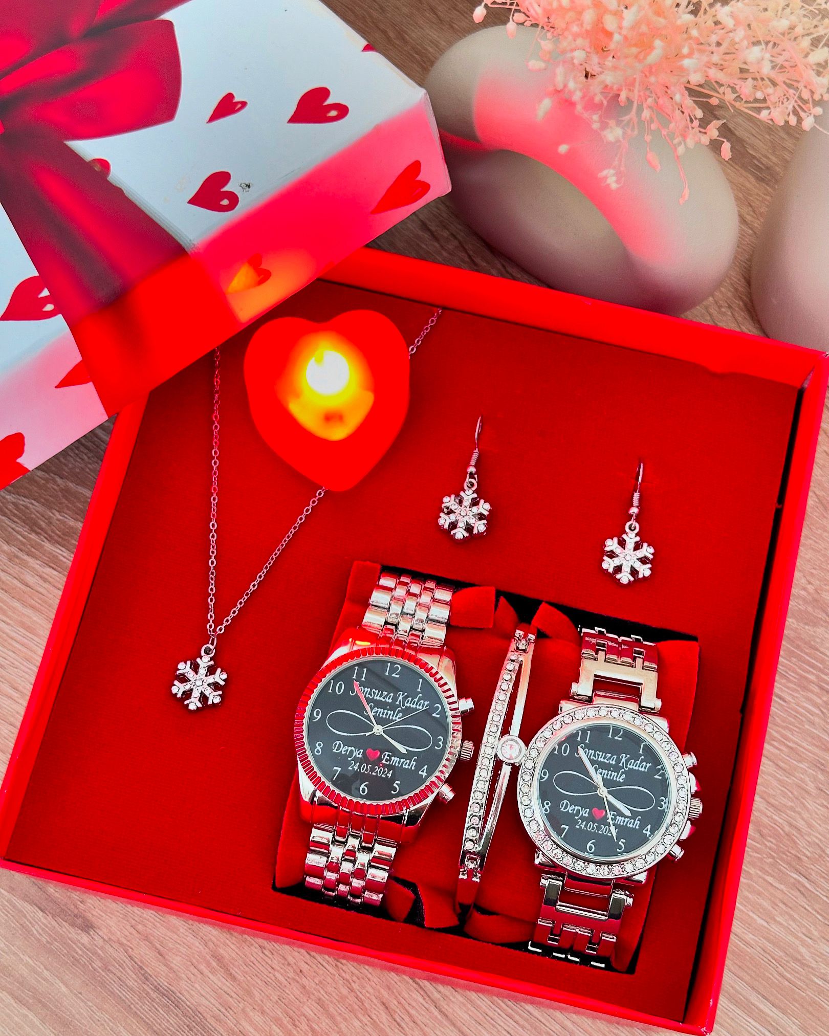 Gümüş Çift Saat Bileklik Kolye ve Küpe Hediyeli Kare Set Kutu