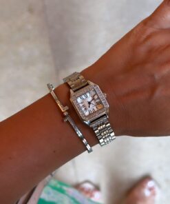 Gümüş Kare Kadın Saati Bileklik Hediyeli