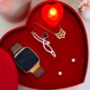 Gümüş Saat Bileklik Kolye ve Küpe Hediyeli Kalp Set Kutu