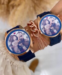 Lacivert Rose Gold Resimli Sert Silikon Kordon Çift Saatleri