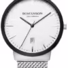 Romanson TB8A12HMJJASR5, klasik zarafet ve modern minimalizmi bir araya getiren özel bir erkek kol saatidir. Gümüş tonlu paslanmaz çelik kasa ve bilezik, beyaz kadranla birleşerek sade ama etkileyici bir görünüm oluşturur. İnce indeksler ve net çizgiler, saatin zamansız tasarım anlayışını yansıtır.